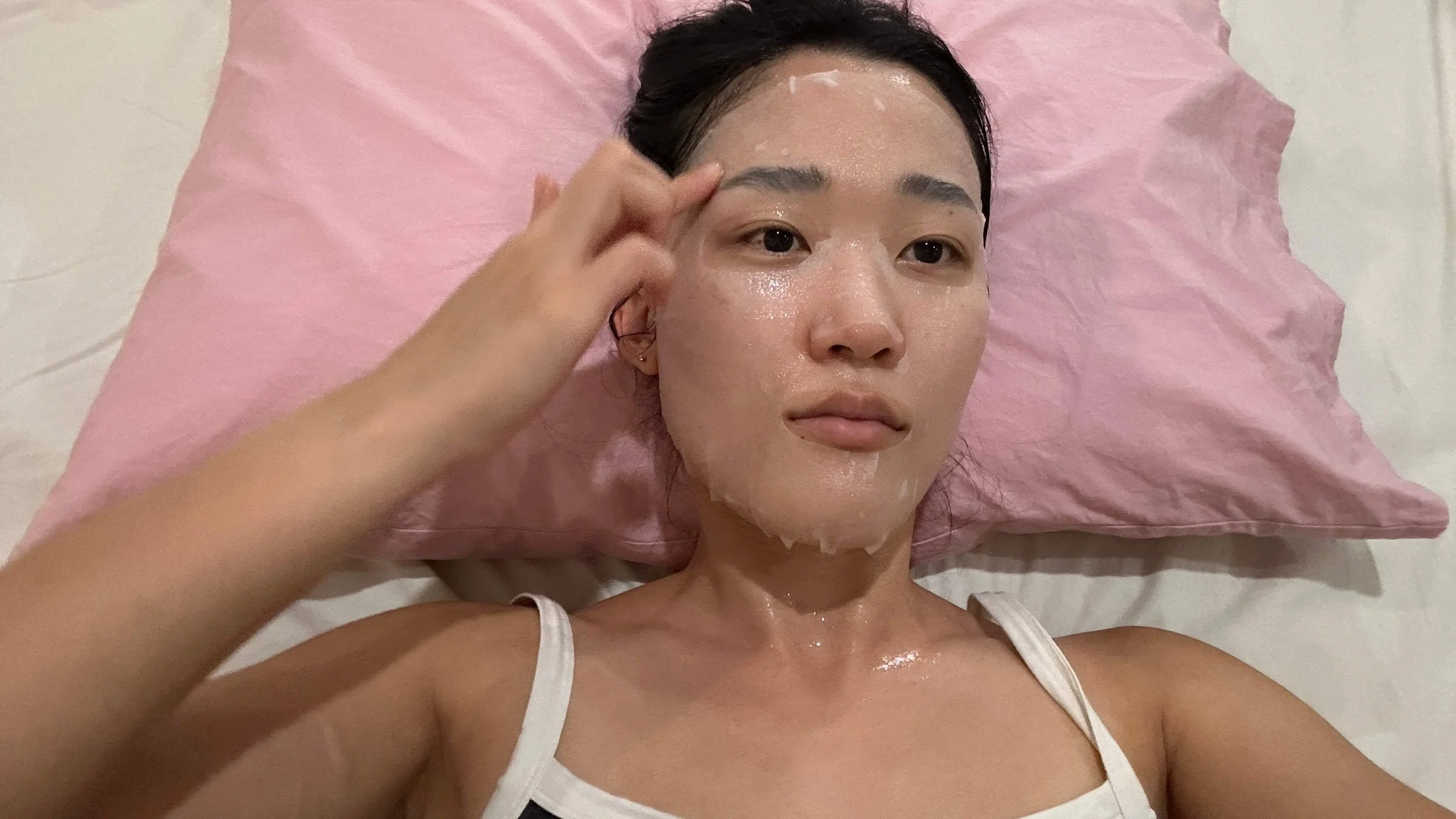 For example, after I do my weekly pore care routine, I’ll lie down with a cold sheet mask on my face, feet up against the wall, and listen to something light-hearted and feel-good for those 10-15 minutes!