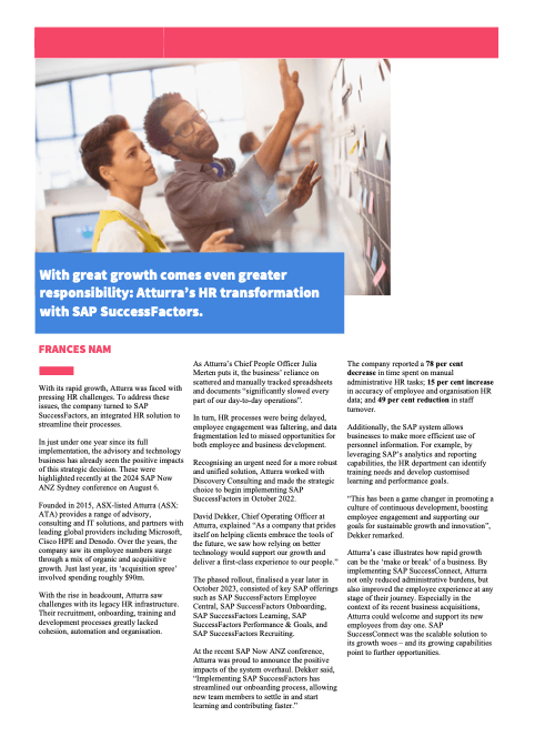 Below you’ll find a sample news report article about how Attura had experienced positive effects to its business by implementing SAP SuccessFactors.